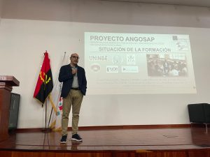 Durante el Foro, los coordinadores del Proyecto, José Ignacio Navarro Guzmán y Álvaro Rodríguez Mora, presentaron a los asistentes los principales avances del Proyecto AngoSAP, incluyendo su estado actual, los objetivos generales y específicos, la estructura formativa diseñada y su grado de implementación en cada institución participante.